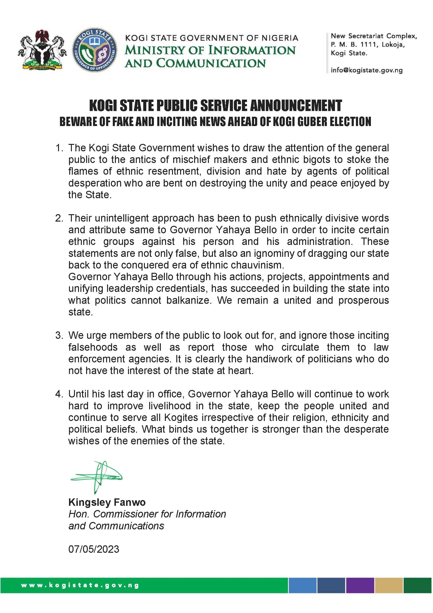 Office Address: Kogi State Investment House, 17 Ado Ibrahim Road, GRA, Lokoja ,Kogi State.
